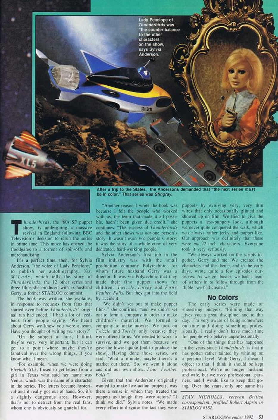 It's long been my practice to photocopy my articles etc as a reference and to store the magazines or newspapers they appeared in. Which is all very well until finding said mags and papers becomes a major undertaking. Consequently these archive offerings are often b&w copies of colour pages, as what follows. But here, in colour, is Starlog 207's cover: