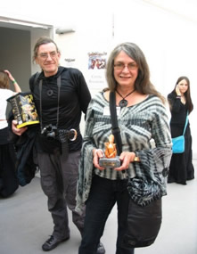 My wife Anne and I last saw Louise at Belgium’s Trolls & Legendes festival at Easter, where she was thrilled to receive a lifetime achievement award. Here’s a photo taken just after the presentation -