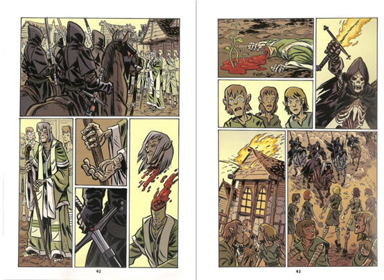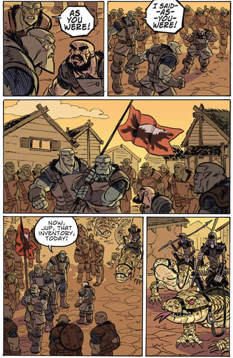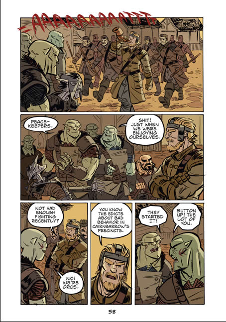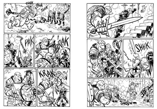 Joe Flood, the artist on Orcs: Forged For War, the graphic novel published by First Second Books (US), Pan Macmillan (UK) and Gallimard (France) last October, is selling off the original artwork. Here are a couple of sample pages -