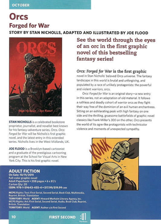 Orcs: Forged For War is an all new story, not an adaptation of the existing novels, with words by me and art by Joe Flood. Les Editions Gallimard published in France on 8th March. The US and UK editions have been available since October.