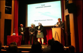 Our award ceremony, a black tie and posh frock affair, was held on 19th June at the HQ of the Magic Circle in London. The audience consisted of publishers, media, movers and shakers in the fantasy community and, most importantly, readers. We were particularly pleased that David Gemmell’s children, Kate and Luke, not only attended but participated in the ceremony. The winner of the Legend Award, for best fantasy novel of the year, was Polish author Andrzej Sapkowski for Blood of Elves(published in the UK by Gollancz).