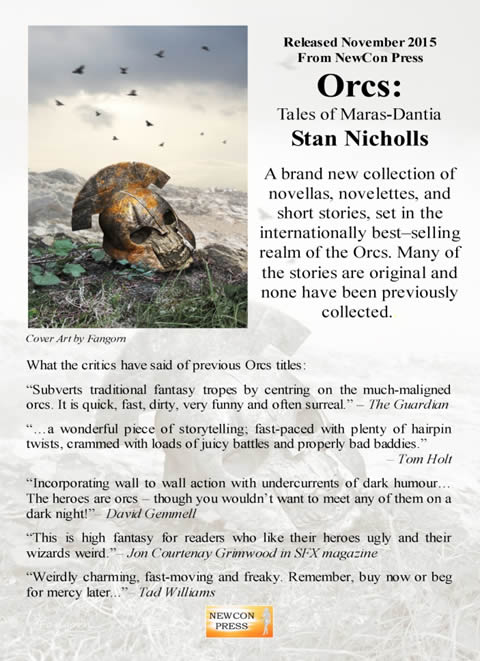 There is also a signed, numbered hardback of the Orcs book limited to just 100 copies, published 1st December, of which I understand something like half have been sold at time of writing. Please note that this edition is available only from Newcon Press directly, while stocks last.