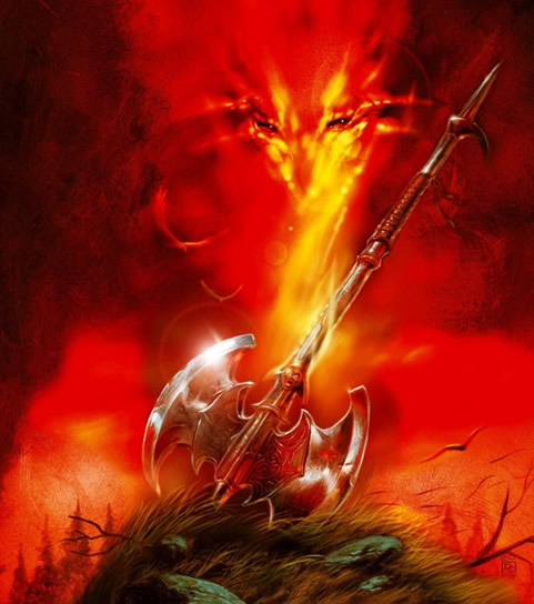 Alchemy Press. It’s too early to have a cover for that; I’ll post it here when available. Mine, which I’ve mentioned before, is Orcs: Tales of Maras-Dantia, from Newcon Press. Here’s the cover artwork, by Chris (Fangorn) Baker, sans over-print: